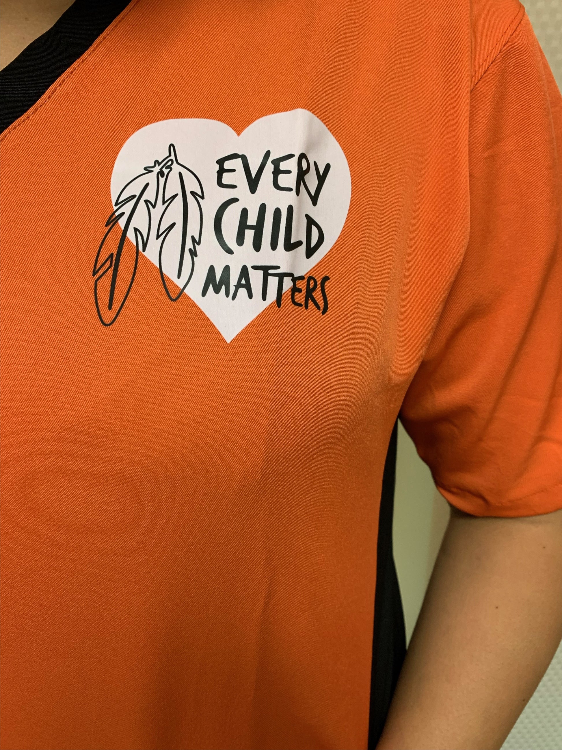 Every Child Matters Scrub top was created to encourage the healers that wear them to speak up and begin dialogue about Truth and Reconciliation and awareness of Indigenous history and legacy in their healthcare settings, with Indigenous and non-indigenous alike. Start talking, be the change!